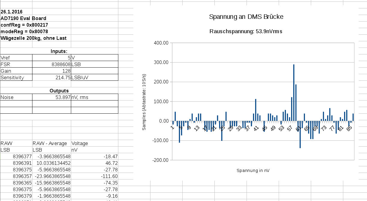 The samplerate was set to 10 S/s, chopping enabled (continuous offset and gain correction).