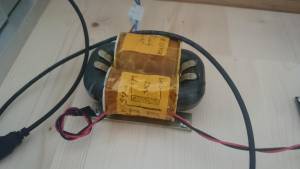 R-Core transformer, 230V to 2x 9V. This type of transformer has the least capacitive coupling. It's good to avoid common mode currents.