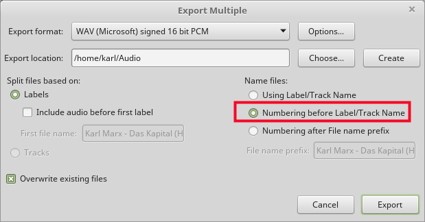 Strg+M | Erstellt einen Label an der akuellen Position des Wiedergabe-Cursors |