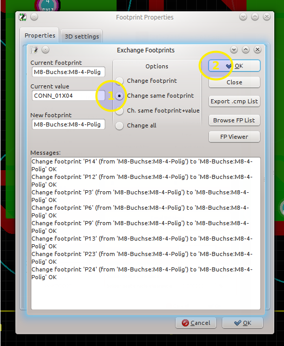 If you have places a footprint many times on a board, and then you want to change the footprint and update all instances in Kicad, you need a bit of workaround, sinc a dedicated command is not available.