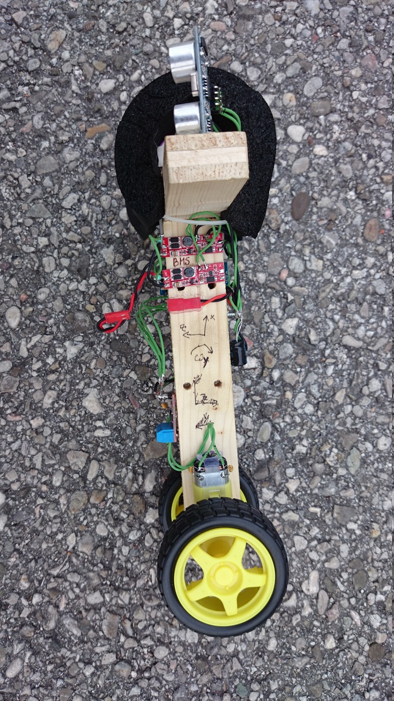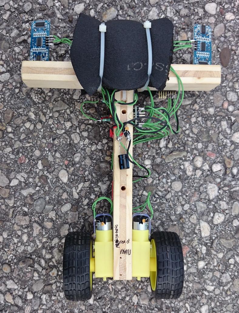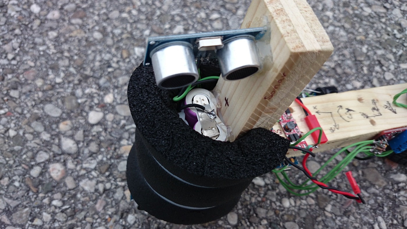 Beim Prototypen hat sich herausgestellt, dass die Kombination aus den Hochsetzstellern und den Motoren starke elektromagnetische Störungen verursacht, sodass sich der Mikrocontroller aufhängt, und nur mehr durch einen Reset wieder zur Vernunft gebracht werden kann. Als Abhilfe wurden mehrere Maßnahmen getroffen. Unter anderem wurden Entstörkondensatoren direkt an den Gleichstrommotoren angebracht, je zwei Stück pro Motor.