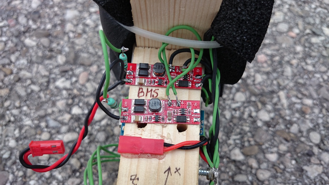Stellt das BMS einen Kurzschluss fest, wird der Ausgang deaktiviert. Eingeschaltet kann er wieder werden indem man entweder die Batterie kurz abklemmt, oder man den USB-Laderegler mit einem Kabel an eine USB-Buchse ansteckt.