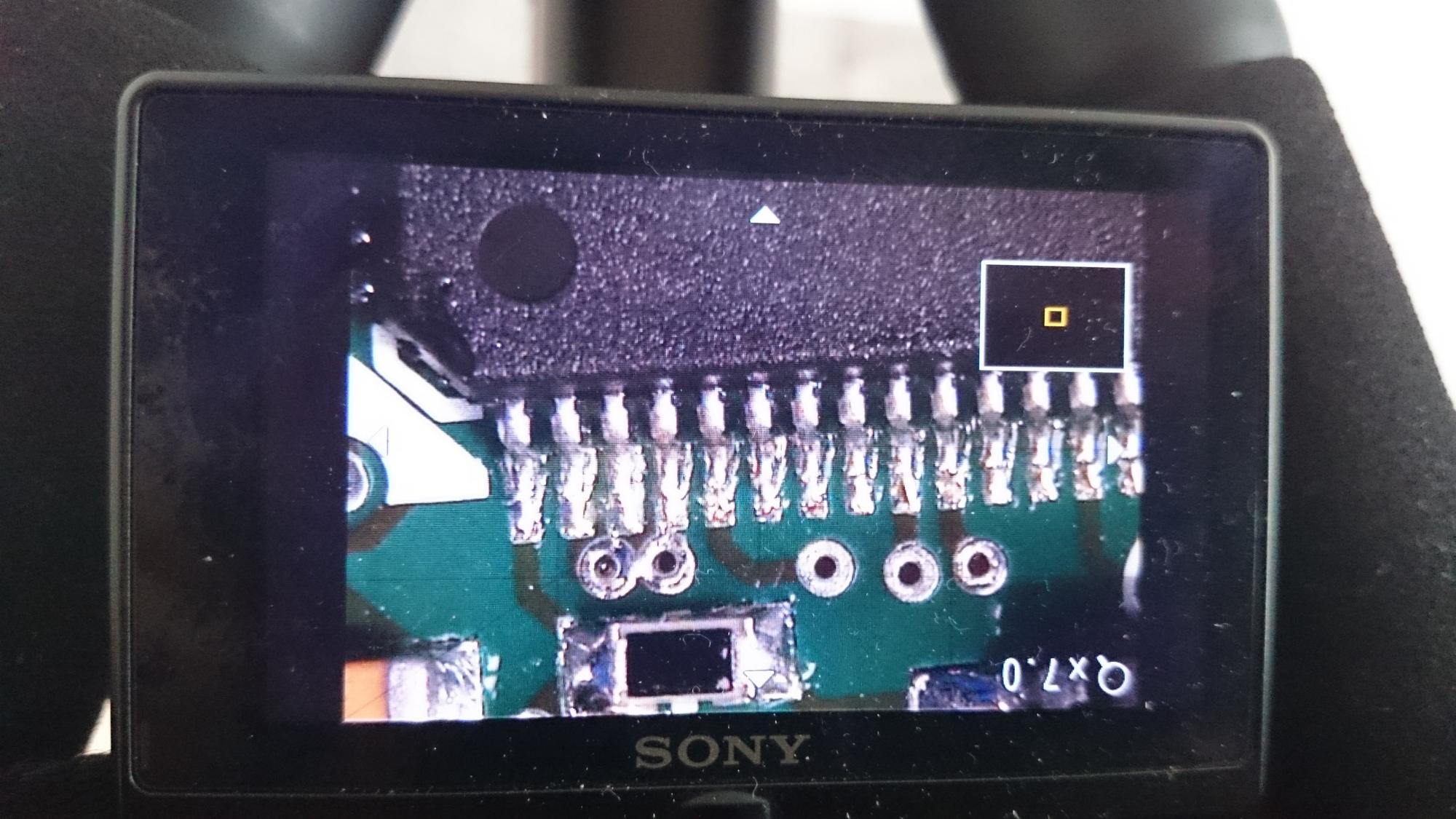 And here we can see, how a USB microscope isn't working for soldering under the lens. Mainly due to the short distance, and the time lag.