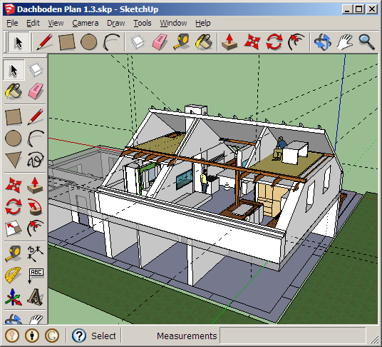 Wir haben z.B. unseren kompletten Wohnungsausbau damit geplant. Begonnen wurde mit dem Aufzeichnen der Naturmaße des „Rohbaus“ und des Dachstuhls. Anschließend wurden nach und nach die Details eingeplant. Dachflächenfenster, Wände, Küche, Bad, Dusche, Stiegenhaus und zum Schluss auch noch unser Doppelbett im Schlafzimmer, das ich dann selbst gefertigt habe.