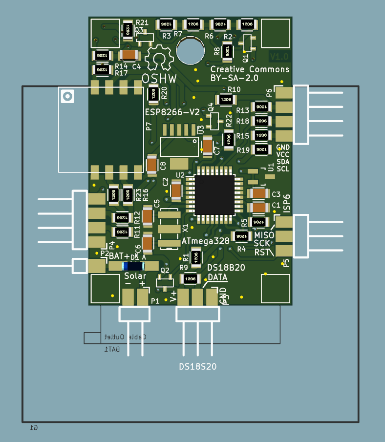 One has to keep in mind, that direct sun light leads to an error in temperature mesurement, if the sensor is soldered directly to the PCB. We recommend to use a short cable (max. 1m) to put the sensor in a good place for measuring the ambient temperature, and mentaining a good orientation of the solar panel to the sun light.