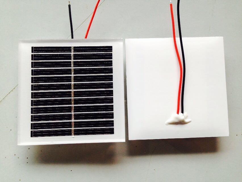 The solar panel is has a size of 80x80mm and is 5mm thick. It is a laminated glass panel, which the optimum technology for long life time (20 years and more). We also had the option to buy cheaper epoxy sealed panels, buth their life time is about 2-3 or perhaps 5 years, depending on who you ask.