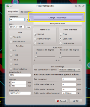 Dieses Feld wird auch in einem neu erstellten Component (Symbol) angehängt, aber nur wenn man den Dialog für „Field Properties“ aufgemacht hat. Zu diesem Dialog kommt man über das große T, in der obigen Leiste im „Part Library Editor“