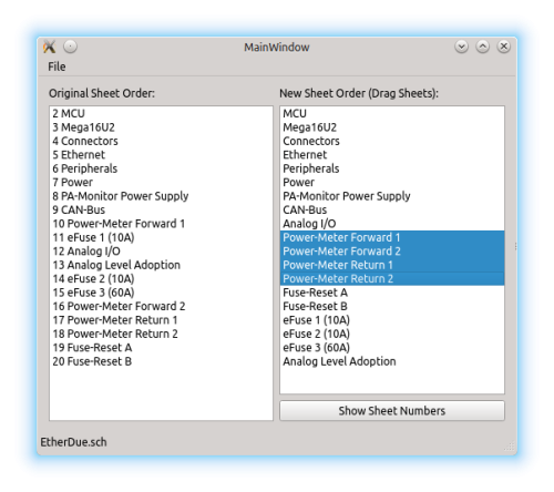 Today I've written a simple tool for doing a rearrangement of multiple subsheets in an hierarchical schematic project. Since this feature isn't available in eeschema, this is now possible with this external tool written in with Qt.